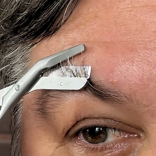 These are perfect for the eye brows. Mine are long & curly & wouldn't grease down. I'd seen this technique with a comb & scissors. These are two combined into one. I bought two pairs. Love them.